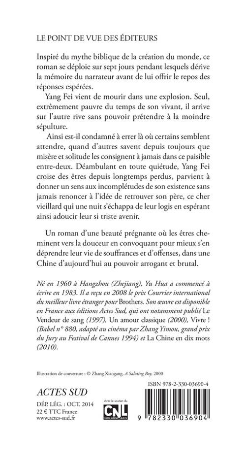 Ainsi est-il condamné à errer là où certains semblent attendre, quand d'autres savent depuis toujours que misère et solitude les consignent à jamais dans ce paisible entre-deux. Déambulant en toute quiétude, Yang Fei croise des êtres depuis longtemps perdus, parvient à donner un sens aux incomplétudes de son existence sans jamais renoncer à l'idée de retrouver son père, ce cher vieillard qui une nuit s'échappa de leur logis en espérant ainsi adoucir leur si triste avenir.