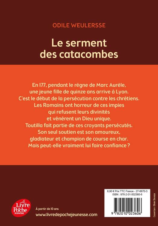 En 177, pendant le règne de Marc Aurèle, une jeune fille de quinze ans arrive à Lyon. C'est le début de la persécution contre les chrétiens : les Romains ont en horreur ces « impies » qui refusent leurs divinités et vénèrent un dieu unique. Toutilla est une de ces croyants persécutés. Son seul soutien est son amoureux, gladiateur et champion de course de chars ! Mais peut-elle lui faire confiance ?