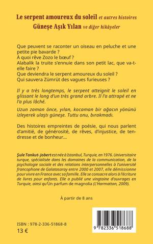 Uzun zaman önce, yılan, kocaman bir ağacın yönünü izleyerek ulaştı güneşe. Tuttu onu, bırakmadı. Des histoires empreintes de poésie, qui nous parlent d'amitié, de générosité, de rêves, d'injustice, de tendresse et de bonheur...