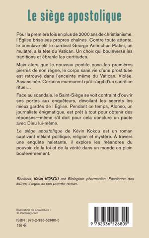Pour la première fois en plus de 2000 ans de christianisme, l'Église brise ses propres chaînes. Contre toute attente, le conclave élit le cardinal George Antiochus Platini, un mulâtre, à la tête du Vatican. Un choix qui bouleverse les traditions et ébranle les certitudes. Mais alors que le nouveau pontife pose les premières pierres de son règne, le corps sans vie d'une prostituée est retrouvé dans l'enceinte même du Vatican. Violée. Assassinée. Certains murmurent qu'il s'agit d'un sacrifice rituel... Face au scandale, le Saint-Siège se voit contraint d'ouvrir ses portes aux enquêteurs, dévoilant les secrets les mieux gardés de l'Église. Pendant ce temps, Alonso, un journaliste énigmatique, est prêt à tout pour obtenir des réponses-même s'il doit pour cela conclure un pacte avec Dieu lui-même. Le siège apostolique de Kévin Kokou est un roman captivant mêlant politique, religion et mystère. À travers une enquête haletante, il explore les méandres du pouvoir, de la foi et de la vérité dans un monde en plein bouleversement.