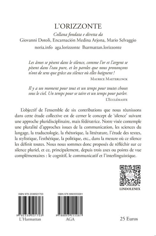 Il y a un moment pour tout et un temps pour toutes choses sous le ciel. Un temps pour se taire et un temps pour parler. L’Ecclésiaste L’objectif de l’ensemble de six contributions que nous réunissons dans cette étude collective est de cerner le concept de ‘silence’ suivant une approche pluridisciplinaire, mais fédératrice. Notre visée contemple une pluralité d’approches issues de la communication, les sciences du langage, la traductologie, la rhétorique, la littérature, l’étude des textes, la stylistique, l’esthétique, la politique, etc., dans la mesure où ce silence les définit toutes. Nous nous sommes donc proposés de réfléchir sur ce silence pluriel, et ce, principalement, depuis trois axes ou points de vue complémentaires : le cognitif, le communicatif et l’interlinguistique.