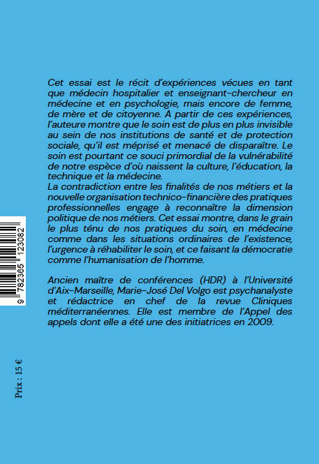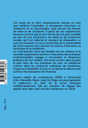 Cet essai est le récit d'expériences vécues en tant que médecin hospitalier, enseignant-chercheur à l'université en médecine et en psychologie, femme, mère et citoyenne. A partir de ces expériences, l'autrice montre que le soin est de plus en plus invisible au sein de nos institutions de santé et de protection sociale, qu'il est méprisé et menacé de disparaître. Le soin est pourtant ce souci de la vulnérabilité de notre espèce d'où naissent la culture, l'éducation, la technique et la médecine. La contradiction entre les finalités de nos métiers et la nouvelle organisation technico-financière des pratiques professionnelles engage à reconnaître la dimension politique de nos métiers. Cet essai montre dans le grain le plus ténu de nos pratiques de soin, en médecine comme dans les situations ordinaires de l'existence, l'urgence à réhabiliter le soin, et ce faisant la démocratie comme l'humanisation de l'homme.