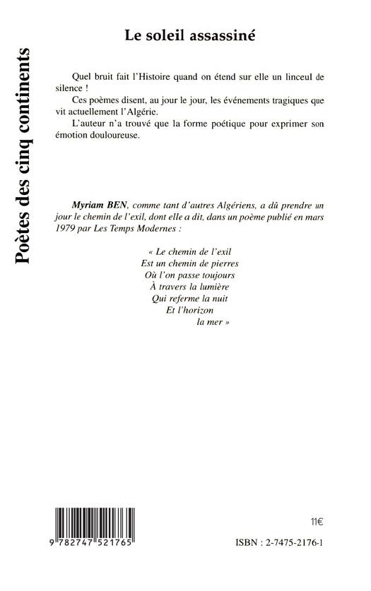 Quel bruit fait l'Histoire quand on étend sur elle un linceul de silence ! Ces poèmes disent, au jour le jour, les événements tragiques que vit actuellement l'Algérie. L'auteur n'a trouvé que la forme poétique pour exprimer son émotion douloureuse.