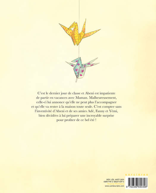 C'est le dernier jour de classe et Abeni est impatiente de partir en vacances avec Maman. Malheureusement, celle-ci lui annonce qu'elle ne peut plus l'accompagner et qu'elle va rester à la maison toute seule. C'est compter sans l'inventivité d'Abeni et de ses amies Adé, Fanny et Yémi, bien décidées à lui préparer une incroyable surprise pour profiter de ce bel été !