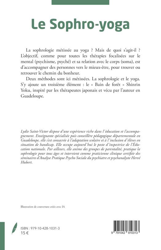 La sophrologie métissée au yoga ? Mais de quoi s'agit-il ? L'objectif, comme pour toutes les thérapies focalisées sur le mental (psychisme, psyché) et sa relation avec le corps (soma), est d'accompagner des personnes vers le mieux-être, pour trouver ou retrouver le chemin du bonheur. Deux méthodes sont ici métissées. La sophrologie et le yoga. S'y ajoute un troisième élément: le Bain de forêt Shinrin Yoku, inspiré par les thérapeutes japonais et vécu par l'auteur en Guadeloupe.