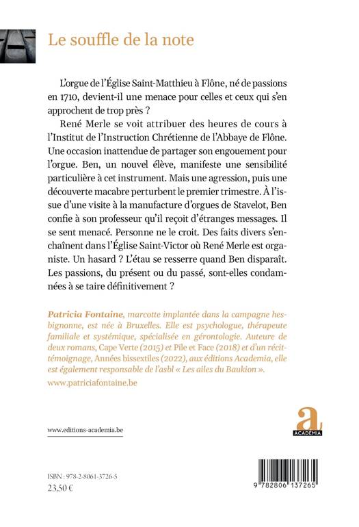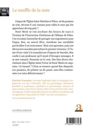 Né en 1710, classé au patrimoine exceptionnel de Wallonie, l'orgue de l'Abbaye de Flône est-il une menace pour ceux et celles qui s'en approchent de trop près ? Au rythme d'un thriller, le lecteur est entraîné dans le monde de l'orgue et de la transmission ancestrale. Quand le présent vibre des tonalités du passé, les passions devront-elles se taire définitivement ?