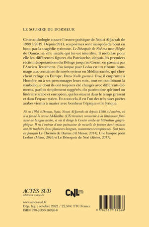 Cette anthologie couvre l'oeuvre poétique de Nouri Al-Jarrah de 1988 à 2019. Depuis 2011, ses poèmes sont marqués de bout en bout par la tragédie syrienne. Le Désespoir de Noé est une élégie de Damas, sa ville natale qui lui est interdite. Il mobilise pour elle les différentes figures du Patriarche, depuis les premiers récits mésopotamiens du Déluge jusqu'au Coran, en passant par l'Ancien Testament. Une barque pour Lesbos est un vibrant hommage aux centaines de noyés syriens en Méditerranée, qui cherchent refuge en Europe. Dans Nulle guerre à Troie, il emprunte à Homère ou à ses personnages leurs voix, tout en combinant la symbolique dont ils ont toujours été chargés avec différents éléments, parfois simplement suggérés, du patrimoine spirituel ou littéraire arabe et européen, qui les situent dans le temps présent et dans l'espace syrien. En tout cela, il est l'un des très rares poètes arabes vivants à marier avec bonheur l'épique et le lyrique.