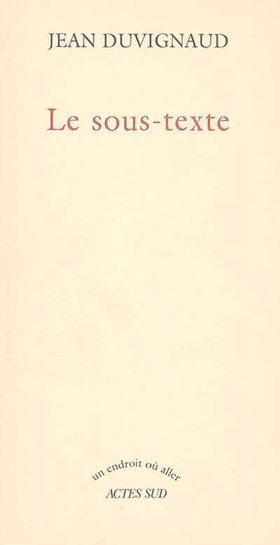 Dans l'idée que c'est peut-être là son dernier livre, avec «Le sous-texte» Jean Duvignaud achève (dit-il) une série de réflexions "hors piste" qu'il avait entrepris de poser sur le papier dans B.-K. («Baroque et Kitsch») en 1997, «Le prix des choses sans prix» en 2001 et «Les Octos» en 2003. Il s'agissait en l'occurrence de capter des signes que nous négligeons de regarder alors qu'ils sont constitutifs de notre avenir, de demeurer "béants aux choses futures" comme le recommandait Montaigne, donc de ne pas disposer les idées reçues en rempart contre les idées naissantes, et de comprendre que des valeurs essentielles à l'intelligence du monde échappent à la cotation boursière. Cette fois, Jean Duvignaud pousse la réflexion par d'autres voies, et il s'efforce de mettre sous nos yeux ce qui chemine "sous le texte" et commence de germer dans notre esprit avant même que les mots ne leur fixent un usage et un sens ; il nous invite à percevoir le tissage qui s'opère sous nos phrases dans les conversations, les débats, les rencontres, les effleurements ; il nous incline à ne pas confondre l'addition de nos individualités avec le "nous" que nous constituons parfois ; il nous convoque en des lieux où des élans sont nés de présences réunies par une communion des perceptions plus que par les mots qui tenteraient de les proférer ; et il nous laisse méditer sur l'incertaine origine des idées. Et tout cela est écrit comme en son for intérieur on se murmure doutes et questions. Ce subtil hommage à l'intelligence n'est évidemment pas à proposer aux pense-menu. Il est réservé à ceux qui ont compris que l'inquiétude est inséparable de l'entendement.