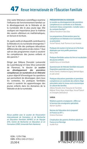 Une vaste littérature scientifique examine l'influence de l'environnement familial sur le développement de la littératie et de la numératie dès le plus jeune âge. Elle souligne son importance pour la maîtrise des savoirs ultérieurs en mathématiques, en lecture et écriture. Or, quels outils et dispositifs contribuent à la littératie et à la numératie émergentes ? Quel est le rôle des pratiques éducatives différenciées des pères et des mères ? Que sait-on des programmes visant à soutenir les compétences des jeunes enfants et des parents ?