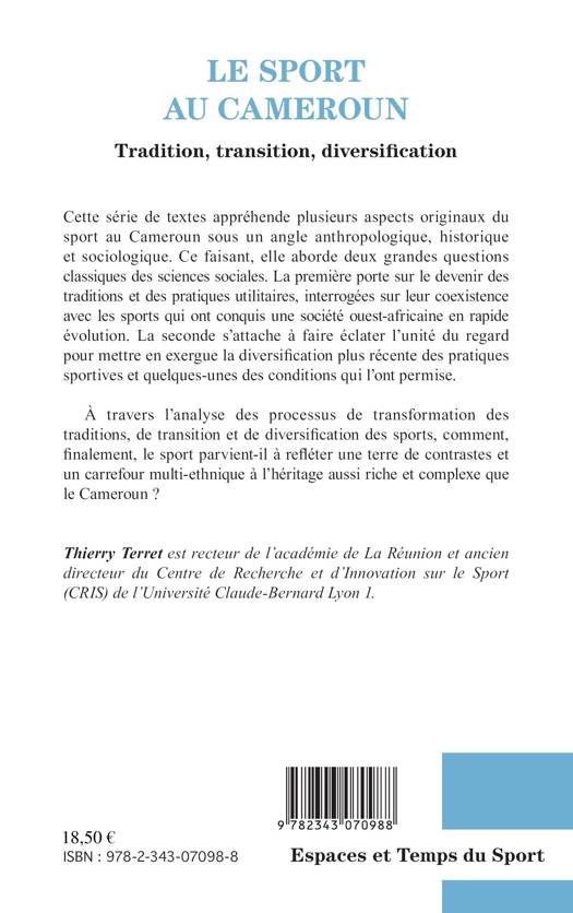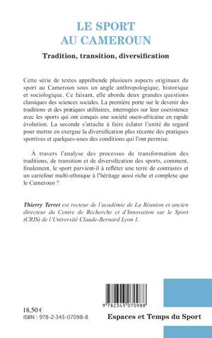 Voici abordés plusieurs aspects originaux du sport au Cameroun sous un angle anthropologique, historique et sociologique. A travers l'analyse des processus de transformation des traditions, de transition et de diversification des sports, comment le sport parvient-il à refléter une terre de contrastes et multi-ethnique à l'héritage aussi riche et complexe que le Cameroun ?
