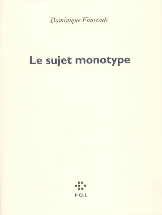 Le monotype, c'est d'abord un procédé de peinture, ou de gravure, qui permet d'obtenir, par impression, un exemplaire unique de l'oeuvre. Les monotypes de Degas sont l'exemple le plus célèbre de cette technique qui impose une grande rapidité d'exécution en même temps qu'une grande précision et, au-dessus de tout, une rare intensité d'inspiration. Degas est d'ailleurs un, sinon le, personnage important de ce livre où chaque geste est définitif, où chaque geste est crucial car le "sujet" ici traité en "monotype" c'est évidemment l'auteur lui-même. Dominique Fourcade y expérimente tour à tour et simultanément les registres de l'essai, du roman, du poème et, à l'intérieur de ces genres, d'innombrables modes (fragmenté, continu, scandé, cursif, discursif, chanté, syncopé, filé, lyrique, objectiviste...) afin de saisir le plus possible de mots et de rythmes et que l'écriture y soit à la fois événement, source d'inspiration, système de transcription, source de réflexion.