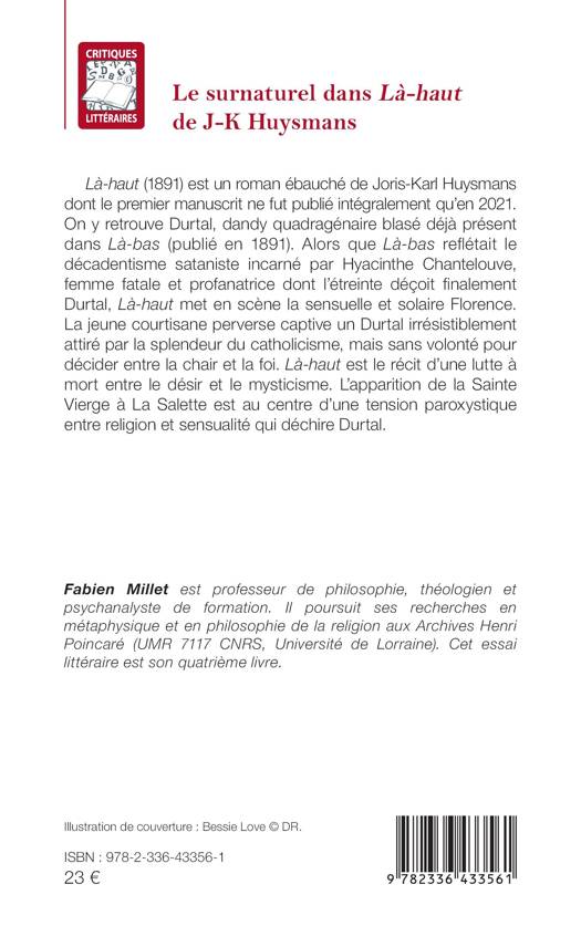 Là-haut (1891) est un roman ébauché de Joris-Karl Huysmans dont le premier manuscrit ne fut publié intégralement qu’en 2021. On y retrouve Durtal, dandy quadragénaire blasé déjà présent dans Là-bas (publié en 1891). Alors que Là-bas reflétait le décadentisme sataniste incarné par Hyacinthe Chantelouve, femme fatale et profanatrice dont l’étreinte déçoit finalement Durtal, Là-haut met en scène la sensuelle et solaire Florence. La jeune courtisane perverse captive un Durtal irrésistiblement attiré par la splendeur du catholicisme, mais sans volonté pour décider entre la chair et la foi. Là-haut est le récit d’une lutte à mort entre le désir et le mysticisme. L’apparition de la Sainte Vierge à La Salette est au centre d’une tension paroxystique entre religion et sensualité qui déchire Durtal.