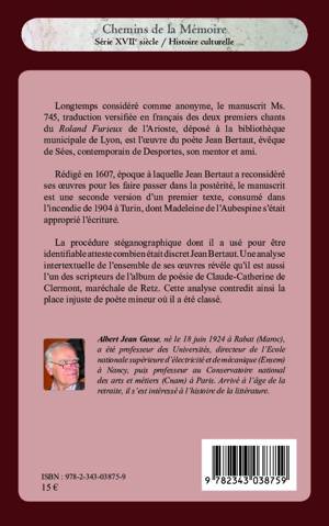 Le manuscrit Ms. 745, traduction versifiée en français des deux premiers chants du Roland Furieux de l'Arioste, déposé à la bibliothèque municipale de Lyon et longtemps considéré comme anonyme, est l'oeuvre du poète Jean Bertaut, évêque de Sées. La procédure stéganographique dont il a usé pour être identifiable atteste combien il était discret.