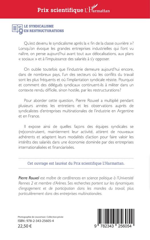 Qu'est devenu le syndicalisme après la « fin de la classe ouvrière » ? Lorsqu'on évoque les grandes entreprises industrielles qui l'ont vu naître, on pense aujourd'hui avant tout aux délocalisations, aux plans « sociaux » et à l'impuissance des salariés à s'y opposer. On oublie toutefois que l'industrie demeure aujourd'hui encore, dans de nombreux pays, l'un des secteurs où les conflits du travail sont les plus fréquents et où l'implantation syndicale résiste. Pourquoi et comment des délégués syndicaux continuent-ils à militer dans un contexte rendu difficile, sinon hostile, par les restructurations ? Pour aborder cette question, Pierre Rouxel a multiplié pendant plusieurs années les entretiens et les observations auprès de syndicalistes d'entreprises multinationales de l'industrie en Argentine et en France. Il expose ainsi de quelles façons des équipes syndicales se (re)construisent, maintiennent leur activité, attirent de nouveaux adhérents et adaptent leurs modalités d'action pour faire valoir les intérêts des salariés dans une économie dominée par des entreprises internationalisées et financiarisées.
