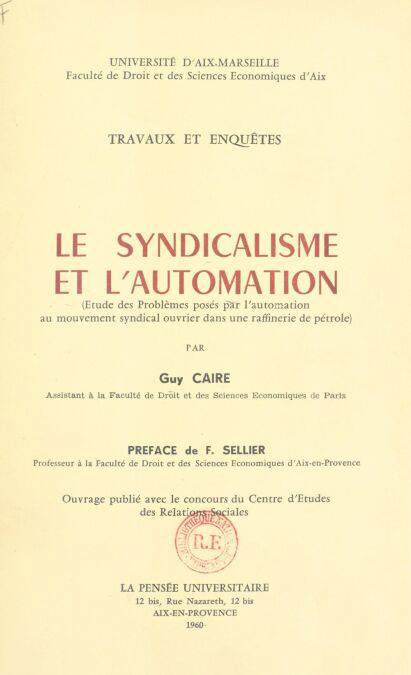 Le syndicalisme et l'automation : étude des problèmes posés par l'automation au mouvement syndical ouvrier dans une raffinerie de pétrole E-BOOK