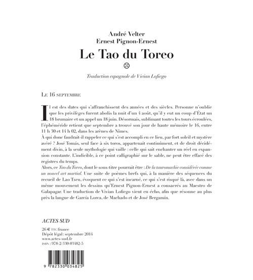 Ce livre est un vibrant hommage à José Tomás et à la corrida qui eut lieu le 16 septembre 2012 dans les arènes de Nîmes, lorsqu'il se retrouva seul face à six toros. Une succession de poèmes disent ainsi l'essence même du toreo, avec à la suite les dessins qu'Ernest Pignon-Ernest a consacrés à l'emblématique corrida et au «maestro» de Galapagar. Une traduction de Vivian Lofiego vient en écho, pour que résonne au plus près la langue de Federico García Lorca, d'Antonio Machado et de José Bergamín.