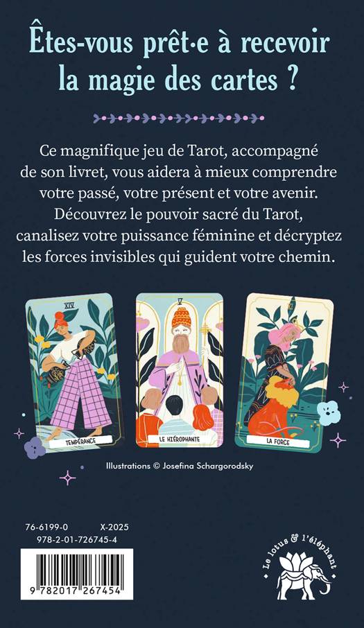 Ce magnifique jeu de Tarot, accompagné de son livret, vous aidera à mieux comprendre votre passé, votre présent et votre avenir. Découvrez le pouvoir sacré du Tarot, canalisez votre puissance féminine et décryptez les forces invisibles qui guident votre chemin.