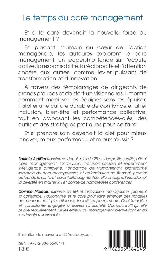 Et si le care devenait la nouvelle force du management ? En plaçant l'humain au coeur de l'action managériale, les auteures explorent le care management, un leadership fondé sur l'écoute active, la responsabilité, la réciprocité et l'attention sincère aux autres, comme levier puissant de transformation et d'innovation. À travers des témoignages de dirigeants de grands groupes et de start-up visionnaires, il montre comment mobiliser les équipes sans les épuiser, installer une culture durable de confiance et allier inclusion, bien-être et performance collective, tout en proposant les compétences-clés, des outils et des stratégies pratiques pour ce faire. Et si prendre soin devenait la clef pour mieux innover, mieux performer... et mieux réussir ?