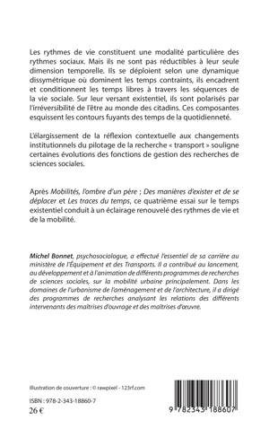 Les rythmes de vie constituent une modalité particulière des rythmes sociaux. Mais ils ne sont pas réductibles à leur seule dimension temporelle. Ils se déploient selon une dynamique dissymétrique où dominent les temps contraints, ils encadrent et conditionnent les temps libres à travers les séquences de la vie sociale. Ce quatrième essai sur le temps existentiel conduit à un éclairage renouvelé des rythmes de vie et de la mobilité.