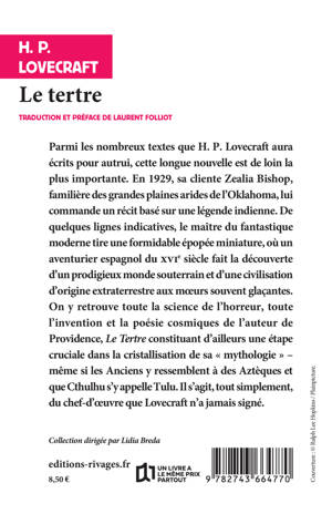 Parmi les nombreux textes que H. P. Lovecraft aura remaniés ou écrits pour autrui, cette longue nouvelle est de loin la plus importante. En 1929, alors qu'il est au faîte de sa créativité, sa jeune cliente Zealia Bishop, familière des grandes plaines arides de l'Oklahoma, lui commande un récit basé sur une vague légende indienne. De quelques lignes indicatives, le maître du fantastique moderne tire une formidable épopée miniature, où un aventurier espagnol du XVIe siècle fait la découverte d'un prodigieux monde souterrain et d'une civilisation d'origine extraterrestre aux moeurs souvent glaçantes.