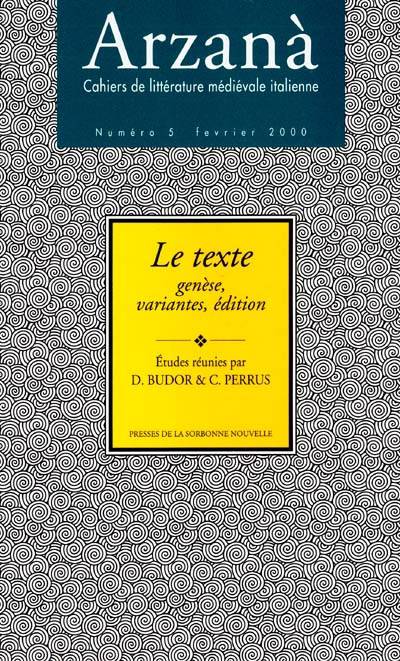 Ce numéro d'Arzanà réunit des travaux de chercheurs qui appartiennent à des champs de compétences différents, littérature en latin, littérature italienne, critique génétique, ayant confronté leurs objets et leurs approches méthodologiques pour poser une même question : comment rendre compte de ce qu'apportent à la construction du sens dans le texte les pratiques d'écriture qui régissent sa génération?