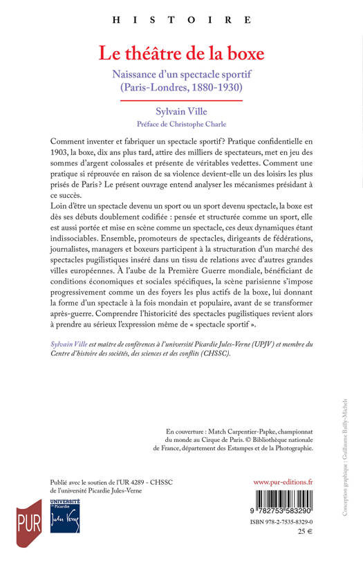 Comment inventer et fabriquer un spectacle sportif ? Pratique confidentielle en 1903, la boxe, dix ans plus tard, attire des milliers de spectateurs, met en jeu des sommes d'argent colossales et présente de véritables vedettes. Comment une pratique si réprouvée en raison de sa violence devient-elle un des loisirs les plus prisés de Paris ? Le présent ouvrage entend analyser les mécanismes présidant à ce succès.