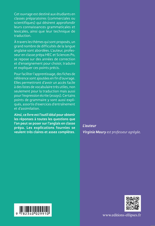Cet ouvrage permettra aux étudiants en classe préparatoire commerciales ou scientifiques d'approfondir leurs connaissances de l'anglais. Les difficultés de la langues sont abordées à travers de nombreux exercices de thèmes, corrigés et expliqués par un professeur en prépa HEC et Sciences Po :