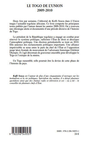 Deux fois par semaine, l'éditorial de Koffi Souza dans l'Union traque l'actualité togolaise africaine. Ce livre comporte les principaux textes publiés par l'auteur durant les années 2009-2010. On y trouvera une chronique alerte et documentée d'une période décisive de l'histoire du Togo.