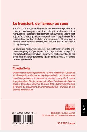 Cet ouvrage nous propose une plongée dans les fondements même de la psychanalyse, à partir d’un de ses concepts majeurs, le transfert, cet étrange amour découvert par Freud, l'inventeur de l'inconscient. Reprenant les premières thèses de celui-ci, l'auteur procède méthodiquement pour les mettre en regard des différents développements postérieurs, souvent complexes, de Jacques Lacan. Elle y montre, avec rigueur et exigence de simplicité, combien celui-ci a renouvelé tant le concept que l'usage pratique de cet amour « subverti ». Les professionnels, psychanalystes, psychiatres, psychologues, et cliniciens divers aussi bien que les usagers de la psychanalyse, les analysants, y sont tous intéressés.