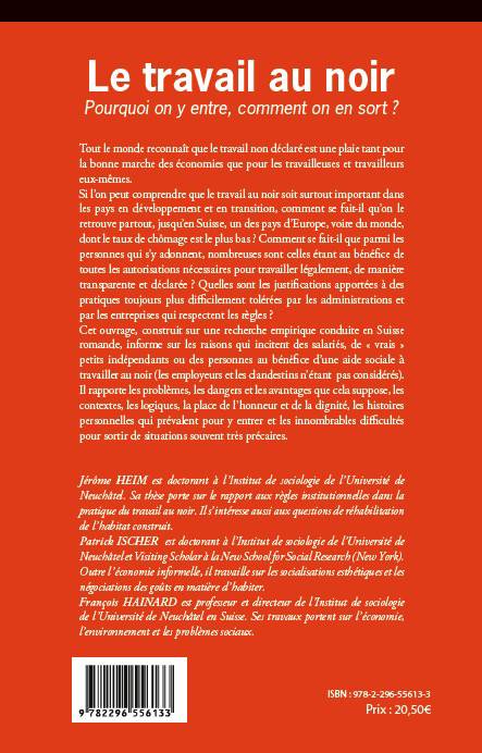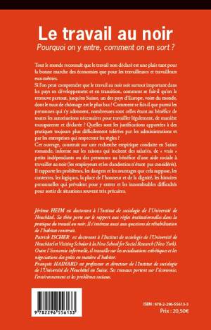 Le travail non déclaré est une plaie, tant pour les économies que pour les travailleurs eux-mêmes. Cet ouvrage enquête sur les raisons qui incitent salariés, petits indépendants ou personnes bénéficiant d'aides sociales à travailler au noir. Il en rapporte les problèmes, les dangers et les avantages, ainsi que les contextes, les logiques, la place de l'honneur et de la dignité, les histoires personnelles qui prévalent pour y entrer et les innombrables difficultés pour en sortir.