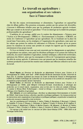 De pressions croissantes s'exercent pour que les pratiques de production agricole évoluent. Mais que connaît-on de la réalité des pratiques professionnelles des agriculteurs ? L'ambition de cette étude est moins de s'intéresser à l'agriculture qu'aux agriculteurs : leurs stratégies, leur organisation, les valeurs que portent les métiers de cultivateur et d'éleveur. On ne pourra penser les mutations du secteur dans prendre en compte les rapports que les agriculteurs entretiennent avec leur propre travail.