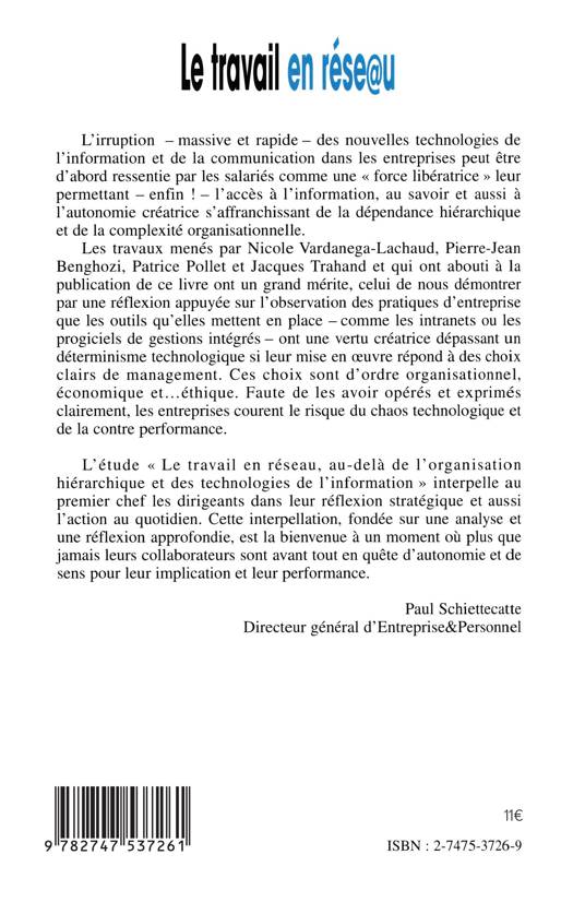L'irruption des nouvelles technologies de l'information et de la communication dans les entreprises peut-être d'abord ressentie par les salariés commme une "force libératrice" leur permettant -enfin!- l'accès à l'information, au savoir et aussi à l'autonomie créatrice s'affranchissant de la dépendance hiérarchique et de la complexité organisationnelle. Cette étude interpelle au premier chef les dirigeants dans leur réflexion stratégique et aussi dans l'action au quotidien.