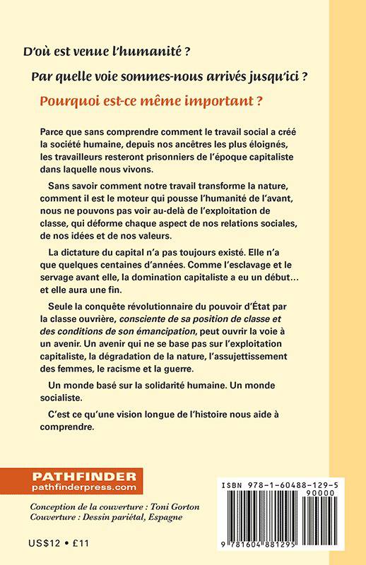 Parce que sans comprendre comment le travail social a créé la société humaine, depuis nos ancêtres les plus éloignés, les travailleurs resteront prisonniers de l’époque capitaliste dans laquelle nous vivons. Sans savoir comment notre travail transforme la nature, comment il est le moteur qui pousse l’humanité de l’avant, nous ne pouvons pas voir au-delà de l’exploitation de classe, qui déforme chaque aspect de nos relations sociales, de nos idées et de nos valeurs. La dictature du capital n’a pas toujours existé. Elle n’a que quelques centaines d’années. Comme l’esclavage et le servage avant elle, la domination capitaliste a eu un début… et elle aura une fin.