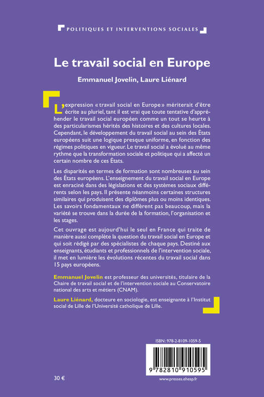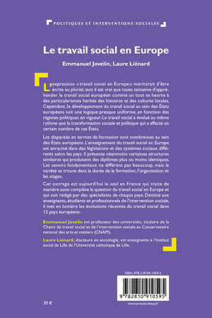 L’expression « travail social en Europe » mériterait d’être écrite au pluriel, tant il est vrai que toute tentative d’appréhender le travail social européen comme un tout se heurte à des particularismes hérités des histoires et des cultures locales. Cependant, le développement du travail social au sein des États européens suit une logique presque uniforme, en fonction des régimes politiques en vigueur. Le travail social a évolué au même rythme que la transformation sociale et politique qui a affecté un certain nombre de ces États. Les disparités en termes de formation sont nombreuses au sein des États européens. L’enseignement du travail social en Europe est enraciné dans des législations et des systèmes sociaux différents selon les pays. Il présente néanmoins certaines structures similaires qui produisent des diplômes plus ou moins identiques. Les savoirs fondamentaux ne diffèrent pas beaucoup, mais la variété se trouve dans la durée de la formation, l’organisation et les stages. Cet ouvrage est aujourd’hui le seul en France qui traite de manière aussi complète la question du travail social en Europe et qui soit rédigé par des spécialistes de chaque pays. Destiné aux enseignants, étudiants et professionnels de l’intervention sociale, il met en lumière les évolutions récentes du travail social dans 15 pays européens.