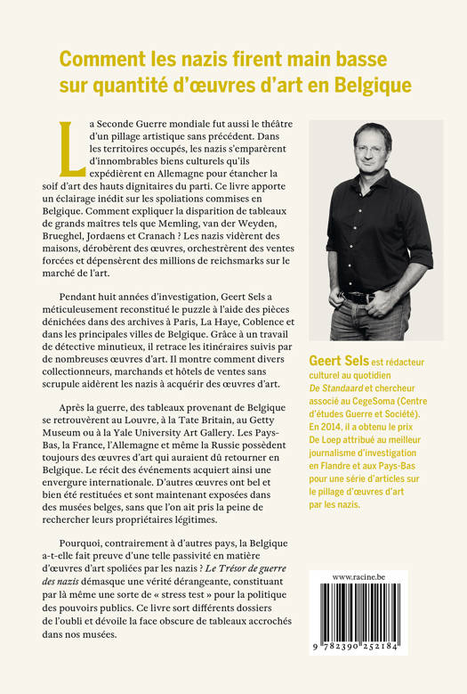 La Seconde Guerre mondiale fut aussi le théâtre d'un pillage artistique sans précédent. Dans les territoires occupés, les nazis s'emparèrent d'innombrables biens culturels qu'ils expédièrent en Allemagne pour étancher la soif d'art des hauts dignitaires du parti. Ce livre apporte un éclairage inédit sur les spoliations commises en Belgique. Comment expliquer la disparition de tableaux de grands maîtres tels que Memling, van der Weyden, Brueghel, Jordaens et Cranach ? Les nazis vidèrent des maisons, dérobèrent des oeuvres, orchestrèrent des ventes forcées et dépensèrent des millions de reichsmarks sur le marché de l'art. Pendant huit années d'investigation, Geert Sels a méticuleusement reconstitué le puzzle à l'aide des pièces dénichées dans des archives à Paris, La Haye, Coblence et dans les principales villes de Belgique. Grâce à un travail de détective minutieux, il retrace les itinéraires suivis par de nombreuses oeuvres d'art. Il montre comment divers collectionneurs, marchands et hôtels de ventes sans scrupule aidèrent les nazis à acquérir des oeuvres d'art. Après la guerre, des tableaux provenant de Belgique se retrouvèrent au Louvre, à la Tate Britain, au Getty Museum ou à la Yale University Art Gallery. Les Pays-Bas, la France, l'Allemagne et même la Russie possèdent toujours des oeuvres d'art qui auraient dû retourner en Belgique. Le récit des événements acquiert ainsi une envergure internationale. D'autres oeuvres ont bel et bien été restituées et sont maintenant exposées dans des musées belges, sans que l'on ait pris la peine de rechercher leurs propriétaires légitimes. Pourquoi, contrairement à d'autres pays, la Belgique a-t-elle fait preuve d'une telle passivité en matière d'oeuvres d'art spoliées par les nazis ? Le Trésor de guerre des nazis démasque une vérité dérangeante, constituant par là même une sorte de « stress test » pour la politique des pouvoirs publics. Ce livre sort différents dossiers de l'oubli et dévoile la face obscure de tableaux accrochés dans nos musées.