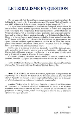 Cet ouvrage est le fruit d'une réflexion menée par des enseignants chercheurs de la Faculté des Lettres et des Sciences humaines de l'Université Marien Ngouabi, en mai 1992, à l'initiative de l'Association congolaise de psychologie (A.C.P.). Les regards croisés sur la question du tribalisme témoignent non seulement de leur vitalité ou de leur richesse exploratoire, mais aussi et surtout de la complexité d'un phénomène dont l'importance défie toute rationalité. Car le tribalisme, au Congo et ailleurs, c'est la personne humaine confrontée tant à sa propre ambivalence qu'à la modernité dans la manière dont celle-ci se définit dans la Cité, la République et la Nation. Avant et après les assises de la Conférence nationale souveraine du 25 février au 10 juin 1991, à Brazzaville, le tribalisme est apparu comme une aporie infrastructurelle et superstructurelle redoutable. Sa fin réside dans l'émergence d'une véritable citoyenneté. Certes, mais à l'évidence, celle-ci est une hypothèse ; et le tribalisme, une quadrature du cercle.
