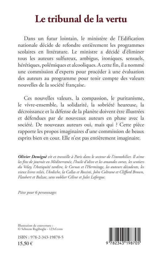 Dans un futur lointain, le ministère de l’Edification nationale décide de refondre entièrement les programmes scolaires en littérature. Le ministre a décidé d’éliminer tous les auteurs sulfureux, ambigus, ironiques, sensuels, hérétiques, polémiques et alcooliques. Une commission d’experts est chargée d'évaluer des auteurs au programme pour tenir compte des valeurs nouvelles de la société française. Ces nouvelles valeurs, la compassion, le puritanisme, le vivre-ensemble, la solidarité, la sobriété heureuse, la décroissance et la défense de la planète doivent être illustrées et défendues par de nouveaux auteurs en phase avec la société. De nouveaux auteurs oui, mais qui ?