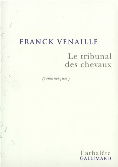 "J'ai souhaité écrire un livre de moraliste. Est-ce pour cela que, dans ce Tribunal des chevaux, c'est un père qui assure la présidence ? Il s'agit du géniteur sous toutes ses formes, homme-cheval, figure de la légende familiale, archange de la justice en défenseur des faibles et de l'orphelin, expression de la colère des hommes. Autour de lui, en attente de la sentence : l'enfant qui rêve d'être le dernier Comte des Flandres, Alberich face aux trois putains du Rhin, un sale type sorti des Noces de Figaro, ces deux-là, Golaud et Pelléas, qui vont s'entre-tuer dans les souterrains de la jalousie, l'homme en proie à la démangeaison des ailes, ce couple de lesbiennes longeant le lac de Sils Maria, des soldats, plusieurs oiseaux sentimentaux, un prédicant se déplaçant dans les vallées protestantes de l'Engadine, l'homme sans main droite, puis Grosdoigts, qui scie des boîtes crâniennes, toutes et tous animés d'une fureur mystique sans nom. Au banc des accusés, le voyageur centaure : l'auteur, qui s'engage dans ces contrées intimes où le Bien et le Mal s'affrontent, où la sexualité est mise en demeure de choisir enfin son camp." Franck Venaille.