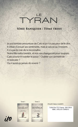 Je suis tombée amoureuse de Cato et je n’ai pas peur de le dire. Il refuse d’avouer ses sentiments, mais je sais ce qu’il ressent. Il n’a pas le cran de le reconnaître. Notre fille naîtra bientôt, et nos vies changeront pour toujours. Cato pourra-t-il oublier le passé ? Oublier son serment de m’exécuter ? Ou n’aurais-je jamais dû revenir ?