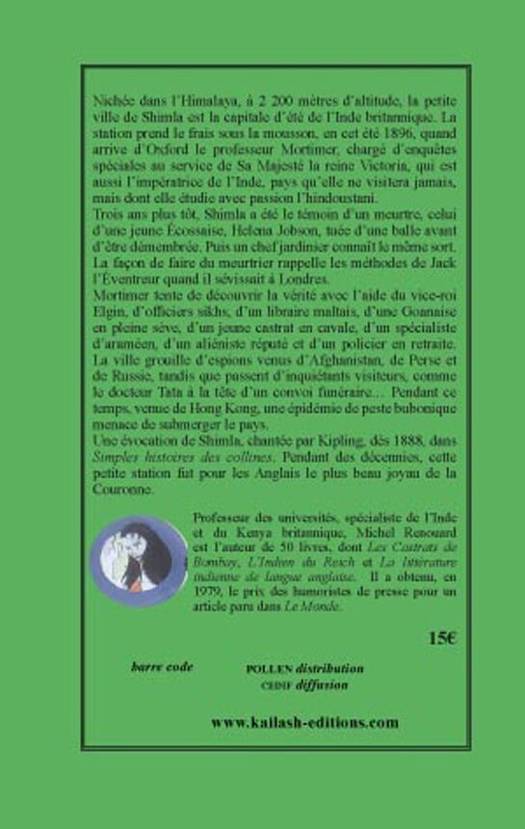 Nichée dans l’Himalaya, à 2 200 mètres d’altitude, la petite ville de Shimla est la capitale d’été de l’Inde britannique. La station prend le frais sous la mousson, en cet été 1896, quand arrive d’Oxford le professeur Mortimer, chargé d’enquêtes spéciales au service de Sa Majesté la reine Victoria, qui est aussi l’impératrice de l’Inde, pays qu’elle ne visitera jamais, mais dont elle étudie avec passion l’hindoustani.<br /> Trois ans plus tôt, Shimla a été le témoin d’un meurtre, celui d’une jeune Écossaise, Helena Jobson, tuée d’une balle avant d’être démembrée. Puis un chef jardinier connaît le même sort. La façon de faire du meurtrier rappelle les méthodes de Jack l’Éventreur quand il sévissait à Londres. <br /> Mortimer tente de découvrir la vérité avec l’aide du vice-roi Elgin, d’officiers sikhs, d’un libraire maltais, d’une Goanaise en pleine sève, d’un jeune castrat en cavale, d’un spécialiste d’araméen, d’un aliéniste réputé et d’un policier en retraite. La ville grouille d’espions venus
