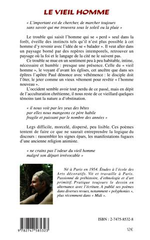 Ce trouble se mue en un sentiment peu à peu habitable, intime, nécessaire et humble : presque une présence. Celle du « vieil homme», le voyant d'avant les églises, cet ancêtre que dans ses épîtres l'apôtre Paul dénonce avec véhémence : le disciple doit l'ôter, le jeter comme un vieux vêtement pour revêtir« l'homme nouveau».