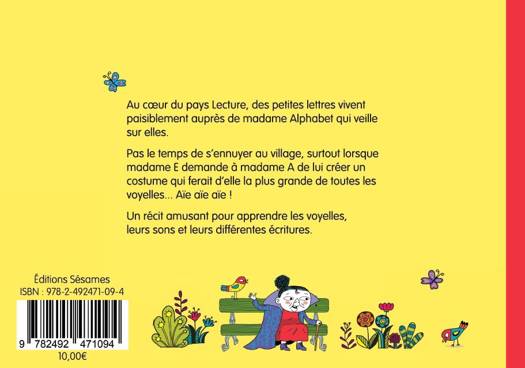 Pas le temps de s'ennuyer au village, surtout lorsque madame E demande à madame A de lui créer un costume qui ferait d'elle la plus grande de toutes les voyelles... Aïe aïe aïe !