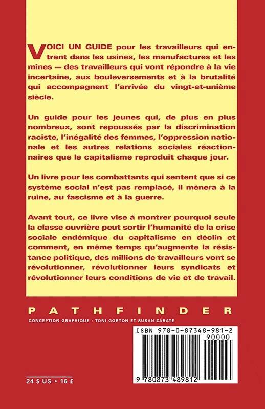 Comment construire le type de parti dont les travailleurs ont besoin pour se préparer aux batailles de classe qui viennent -- des batailles au cours desquelles ils vont construire et renforcer les syndicats en même temps qu'ils se révolutionnent et révolutionnent toute la société. C'est un guide pour les travailleurs, les agriculteurs et les jeunes qui sont repoussés par les inégalités de classe, le racisme, l'oppression des femmes, la brutalité policière et les guerres propres au capitalisme ; et qui cherchent la voie de l'action efficace pour renverser ce système d'exploitation et se joindre à la reconstruction du monde sur de nouvelles assises socialistes.