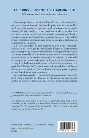 Cet ouvrage nourrit l'ambition d'insuffler vie et dynamique à la coexistence harmonieuse des hommes. Le projet du « vivre-ensemble » n'a de sens et de consistance que parce qu'il est mis en marche par des subjectivités individuelles. Le « vivre-ensemble » ne peut exister là où il n'y a pas « humanité » véritable et le « vivre-ensemble » harmonieux ne peut exister là où triomphent la violence, l'irrationnelle dialectique des conatus individuels et et des puissances « impériales ». Au bout du compte, il ne peut exister là où règne la négation de l'humain, en lieu et place de sa promotion résolue en tant que, sur le plan ontologique, il est une valeur absolue.