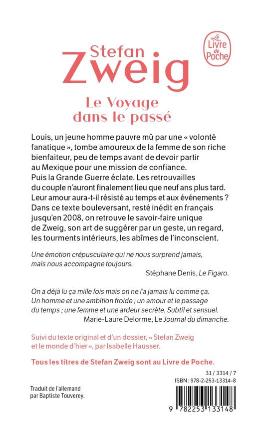 Louis, un jeune homme pauvre mû par une « volonté fanatique », tombe amoureux de la femme de son riche bienfaiteur, mais il doit partir au Mexique pour une mission de confiance. La grande guerre éclate. Les retrouvailles du couple n'auront finalement lieu que neuf ans plus tard. Leur amour aura-t-il résisté ?Dans ce texte bouleversant, resté inédit en français jusqu'en 2008, on retrouve le savoir-faire unique de Zweig, son génie de la psychologie, son art de suggérer par un geste, un regard, les tourments intérieurs, les abîmes de l'inconscient. Une émotion crépusculaire qui ne nous surprend jamais, mais nous accompagne toujours. Stéphane Denis, Le Figaro.On a déjà lu ça mille fois mais on ne l'a jamais lu comme ça. Un homme et une ambition froide; un amour et le passage du temps; une femme et une ardeur secrète. Subtil et sensuel. Marie-Laure Delorme, Journal du Dimanche.Dossier « Stefan Zweig et le monde d'hier » en fin de volume.