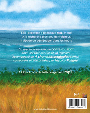 Léo l’escargot a beaucoup trop chaud. A la recherche d’un peu de fraîcheur, il décide de déménager dans les hauts. Une aventure poétique tout en chansons, pour voyager sur l’île de la Réunion et aller à la rencontre de ses paysages et de ses habitants. Un conte musical lu par l'auteur accompagné de 4 chansons originales. Album CD et lien de téléchargement mp3.