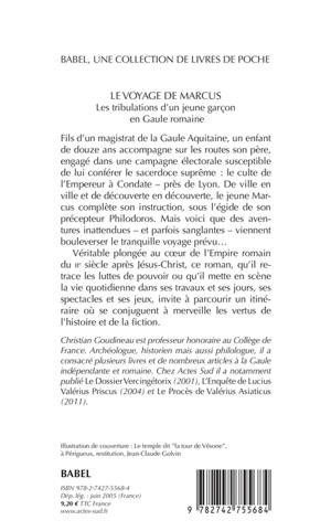 Fils d'un magistrat de la Gaule Aquitaine, un enfant de douze ans accompagne sur les routes son père, engagé dans une campagne électorale susceptible de lui conférer le sacerdoce suprême : le culte de l'Empereur à Condate-près de Lyon. De ville en ville et de découverte en découverte, le jeune Marcus complète son instruction, sous l'égide de son précepteur Philodoros. Mais voici que des aventures inattendues - et parfois sanglantes - viennent bouleverser le tranquille voyage prévu... Véritable plongée au coeur de l'Empire romain du IIe siècle après Jésus-Christ, ce roman, qu'il retrace les luttes de pouvoir ou qu'il mette en scène la vie quotidienne dans ses travaux et ses jours, ses spectacles et ses jeux, invite à parcourir un itinéraire où se conjuguent à merveille les vertus de l'histoire et de la fiction.