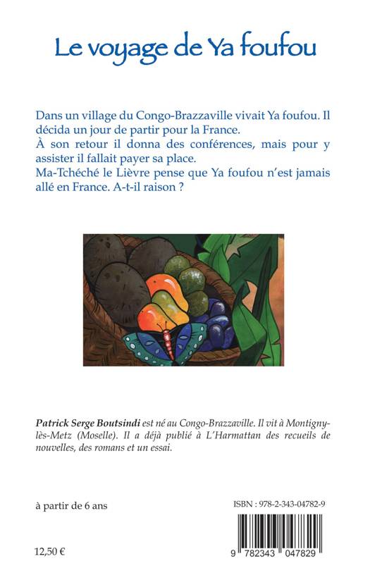 Dans un village du Congo-Brazzaville vivait Ya foufou. Il décida un jour de partir pour la France. A son retour il donna des conférences, mais pour assister il fallait payer sa place. Ma-Tchéché le Lièvre pense que Ya foufou n'est jamais allé en France. A-t-il raison ? À partir de 6 ans (Illustrations en couleur).