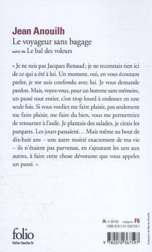 "Je ne suis pas Jacques Renaud ; je ne reconnais rien ici de ce qui a été à lui. Un moment, oui, en vous écoutant parler, je me suis confondu avec lui. Je vous demande pardon. Mais, voyez-vous pour un homme sans mémoire, un passé tout entier, c'est trop lourd à endosser en une seule fois. Si vous voulez me faire plaisir, pas seulement me faire plaisir, me faire du bien, vous me permettriez de retourner à l'asile. Je plantais des salades, je cirais les parquets. Les jours passaient... Mais même au bout de dix-huit ans - une autre moitié exactement de ma vie - ils n'étaient pas parvenus, en s'ajoutant les uns aux autres, à faire cette chose dévorante que vous appelez un passé."