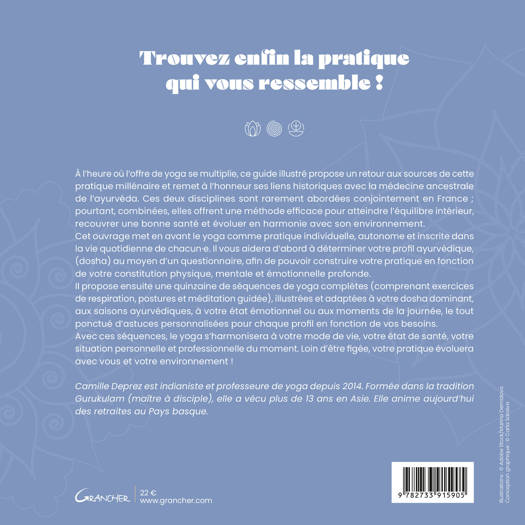 À l’heure où l’offre de yoga se multiplie, ce guide illustré propose un retour aux sources de cette pratique millénaire et remet à l’honneur ses liens historiques avec la médecine ancestrale de l’ayurvéda. Ces deux disciplines sont rarement abordées conjointement en France ; pourtant, combinées, elles offrent une méthode efficace pour atteindre l’équilibre intérieur, recouvrer une bonne santé et évoluer en harmonie avec son environnement. Construit autour d’une pratique individuelle, ce livre s’adapte au profil ayurvédique du lecteur et propose fiches et exercices illustrés en fonction de son quotidien, de sa personnalité, de son état de santé et des périodes de l’année. Le lecteur y trouvera également des conseils et recettes personnalisés.